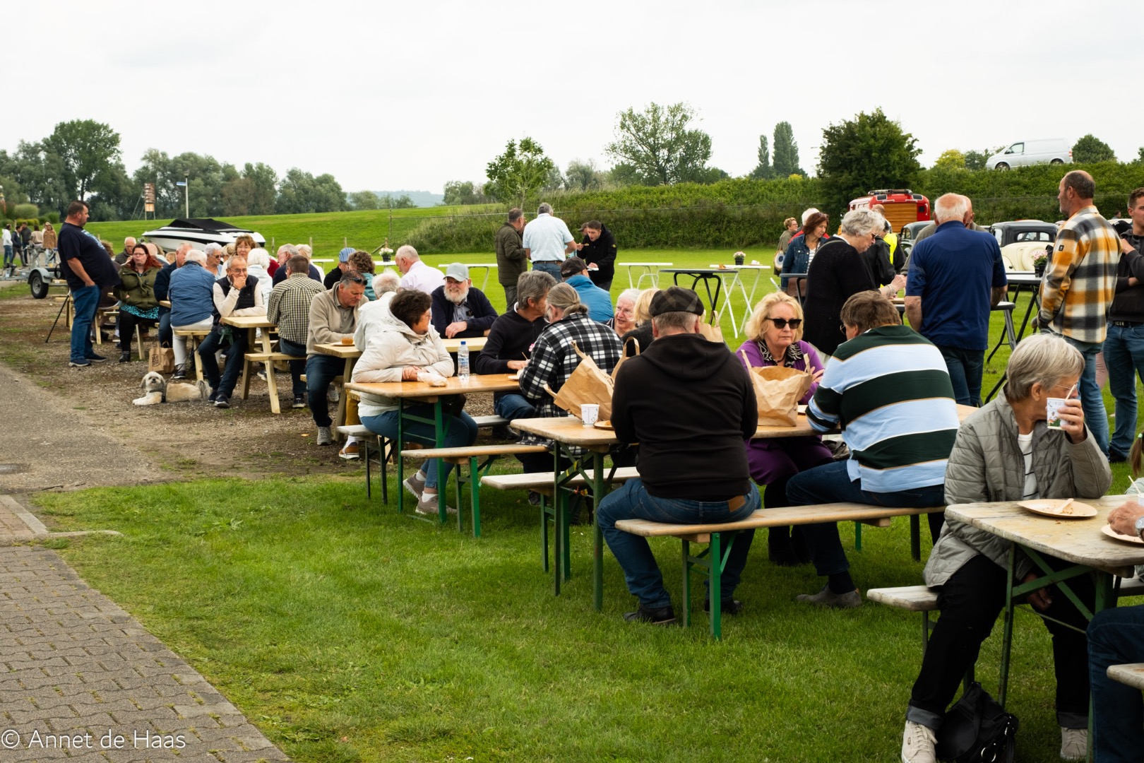 Na de start rond 10.00 uur waarbij iedereen werd uitgezwaaid vertrokken de oldtimers voor een mooie rit door de Betuwe. De rit ging onder meer door de dorpen Ommeren, Ingen, Eck en Wiel, Zoelmond, Ravenswaaij, Zoelen, Buren en Maurik. Een sfeervolle tussenstop werd gehouden op Het Eiland van Maurik, waar alle deelnemers konden genieten van een kop koffie en een stuk overheerlijke appeltaart een welkome pauze en een mooi moment om bij te praten en elkaars auto's te bewonderen.