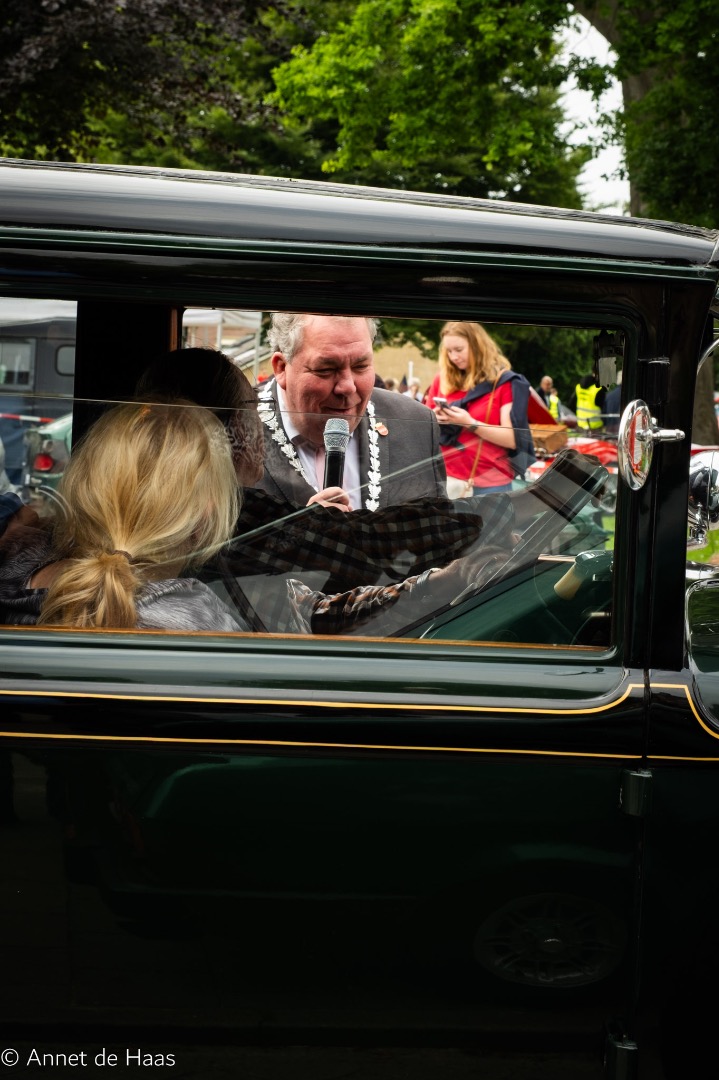 Rond 14.00 uur arriveerde de stoet weer in Lienden, waar niemand minder dan burgemeester Hans Ostendorp aanwezig was om iedereen persoonlijk welkom te heten. Zijn betrokkenheid en warme woorden gaven het evenement een bijzonder tintje. Hierna werden de auto's opgesteld op park Vredelust en daar stroomde het park al snel vol met belangstellenden die de klassiekers van dichtbij kwamen bewonderen. Er heerste een gezellige sfeer, met volop gelegenheid om vragen te stellen aan de trotse eigenaren en foto’s te maken van de glimmende voertuigen. Daarnaast was er de jaarlijkse loterij, waarbij leuke prijzen te winnen waren voor zowel deelnemers als bezoekers. Dit zorgde voor extra sfeer en betrokkenheid.